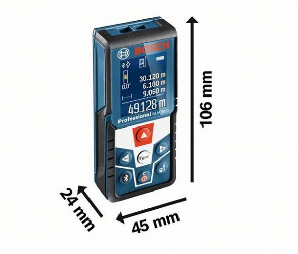 Với khoảng đo rộng, Bosch GLM 50 C Professional sử dụng trong các công tác thi công, lắp đặt hoặc trang trí nội thất trong gia đình. Máy sử dụng tia laser đỏ để dễ dàng quan sát và có tốc độ phản hồi nhanh.